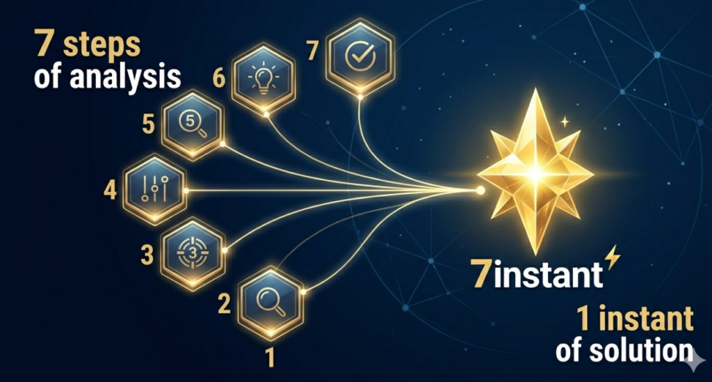 “세상에는 수많은 순간(Instants)이 존재하지만, 우리는 단 하나의 완성된 찰나(7instant)를 지향합니다. 7단계의 치밀한 분석과 통찰을 거쳐 사용자에게 가장 즉각적이고 완벽한 솔루션을 제공하는 것, 그것이 7instant의 정체성입니다.”